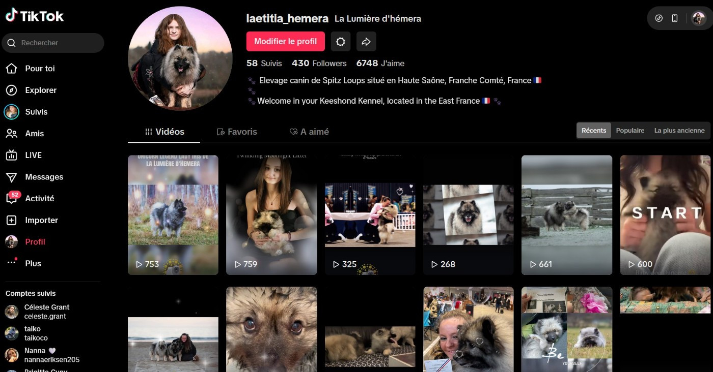 Liens Clubs Divers CLUB FRANCAIS DU SPITZ ALLEMAND ET ITALIEN https://www.centrale-canine.fr/club-francais-du-spitz-allemand-et-italien Notre Page SCC https://www.centrale-canine.fr/de-la-lumiere-dhemera *N'hésitez pas à visiter notre page SCC plus complète sur le site de Société Centrale Canine. *Feel Free to visit our page on the SCC's website. Facebook https://www.facebook.com/spitzloups Notre page Facebook Instagram https://www.instagram.com/lae_titia_hemera/ Notre compte Instagram TIK TOK https://www.tiktok.com/@laetitia_hemera?is_from_webapp=1&sender_device=pc